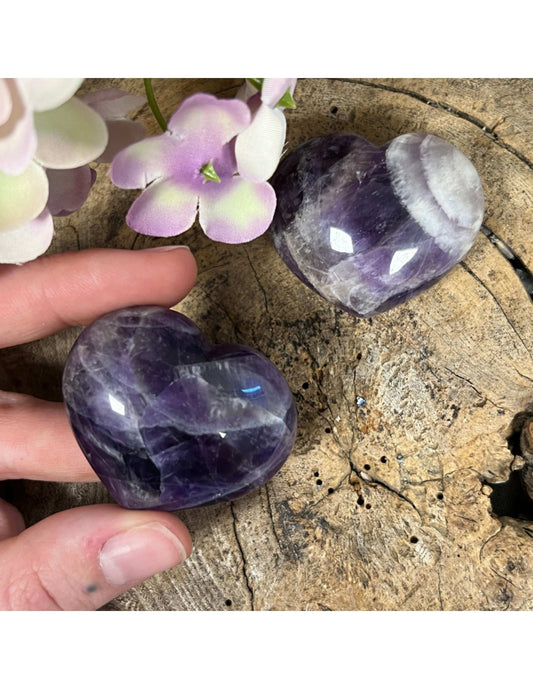 In onze zorgvuldig samengestelde collectie amethist harten vind je een verscheidenheid aan stukken die voor verschillende doeleinden gebruikt kunnen worden. Kies een amethist hart dat je kunt dragen als zaksteen of reisamulet, om constant in verbinding te staan met de kalmerende energie van de steen.