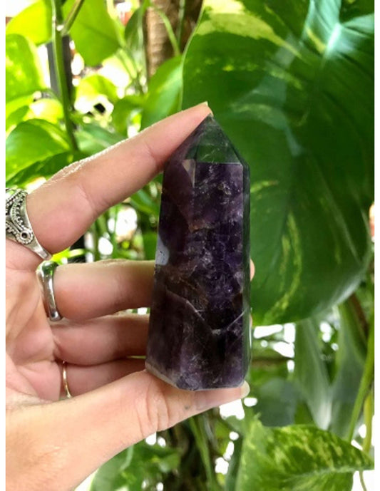 De amethist staat bekend om zijn kalmerende en spirituele werking. In puntvorm wordt deze werking versterkt en specifiek gericht. De amethist punt helpt je om: