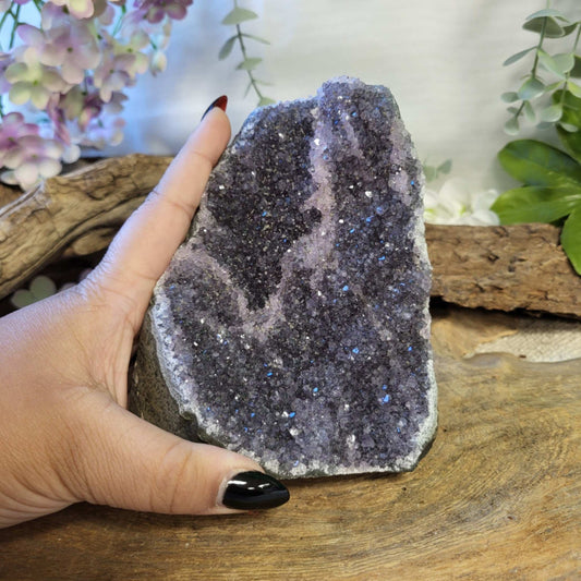 Van kleine handstukken tot grote clusters: ruwe amethist is verkrijgbaar in allerlei vormen en maten. Elk kristal heeft een unieke uitstraling en kan worden gebruikt als decoratie, spiritueel hulpmiddel of persoonlijk sieraad in je interieur. Door zijn natuurlijke schoonheid past ruwe amethist in vrijwel elke stijl en ruimte.