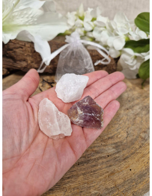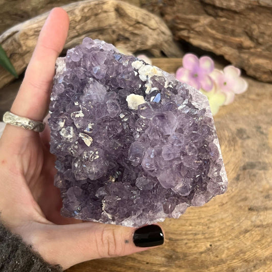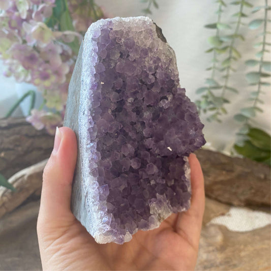 Amethist ruw ontstaat diep onder de aarde, vaak in vulkanische gesteenten. Tijdens miljoenen jaren van natuurlijke processen kristalliseren ijzerrijke vloeistoffen tot de bekende paarse amethistkristallen. Omdat deze stenen niet bewerkt worden, blijft hun oorspronkelijke vorm en kracht volledig behouden, precies zoals de natuur ze bedoeld heeft.