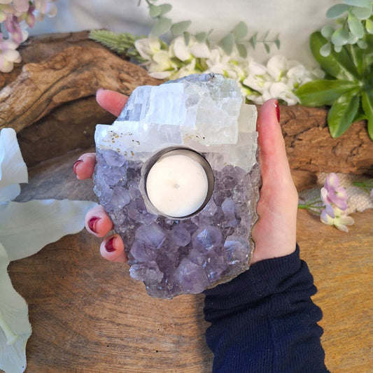 UitverkochtAmethist Calciet theelichthouder nr.01